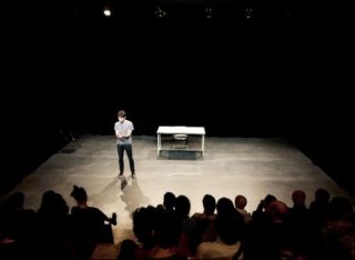 Noé Soulier. Quand j’ai montré la première version du travail fin avril, c’était vraiment intéressant de voir ce qui n’était pas comme je l’avais imaginé. En venant d’un contexte universitaire, je pensais que la manière dont je manipulais les textes paraîtrait étrange, illogique, ce qui ne s’est pas tellement produit. Au contraire, les spectateurs parvenaient en permanence à faire des liens entre des textes très hétérogènes pour construire une sorte de discours global. Mon problème était qu’ils n’ont pas semblé percevoir la composition mais plutôt appréhender le tout comme un flux homogène. J’avais travaillé à produire un discours composé lui-même de discours d’origines multiples sans que chaque composante soit clairement identifiable, mais les contradictions et les relations entre ces textes me semblaient importantes et elles étaient peu transmises lors de cette présentation. Contrairement au contexte académique, il y a au théâtre une très grande tolérance pour la contradiction. Le public est habitué à faire des liens entre des éléments a priori sans rapport. Maintenant, je me demande comment rendre perceptible la composition elle-même. Je me suis rendu compte que j’avais surtout composé au niveau des phrases, de proche en proche, sans vraiment considérer l’architecture globale de la pièce: les sections et les parties. Cela offre beaucoup de possibilités et devrait rendre le travail beaucoup plus palpable. Je pense que ça permet aussi de produire un discours moins didactique qui est plus comme un labyrinthe. Je suis passé par plusieurs phases successives de déconstruction d’un discours logique. J’avais l’impression d’avoir déjà été assez loin mais je me rends compte que je peux aller encore beaucoup plus loin, d’une manière qui devient aussi de plus en plus intéressante au niveau discursif. Par exemple, il peut y avoir des greffes, d’énormes parenthèses, de courtes parenthèses dans d’autres parenthèses, etc. Je sais maintenant que les gens s’y retrouvent. J’ai établi une certaine clarté et je peux l’utiliser pour aller plus loin et pour créer d’autres rapports entre les textes.