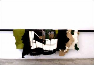 — Sans Titre (cuir vert-blanc), 2005. Technique mixte. 58 x 230 x 8 cm.