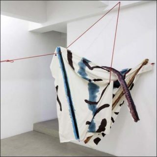 Les installations picturales d’Andrea Kvas, réalisées sur des toiles de coton amovibles, explorent les interactions entre peinture et support. Celui-ci leur octroie une grande liberté de mouvement : soumises au pliage puis déployées, les compositions se libèrent du simple statut de tableau pour entrer dans le champ de la sculpture et de la performance et dialoguer avec leur environnement.