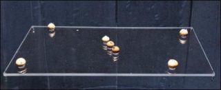 Faire quelque chose que tu n’avais pas prévu est le titre de l’oeuvre que l’artiste présente dans le petit théâtre où il déroule un practice de golf. A l’intérieur d’une cage, les joueurs peuvent tester la puissance de leur drive tandis que les autres visiteurs, assis sur les marches de l’auditorium, peuvent observer la performance qu’ils seront eux-mêmes amenés à accomplir. Le cible, a comme objectif à atteindre, la petite fenêtre de la salle cadrant le paysage extérieur avec le barrage du lac qui a donné naissance à l’île.