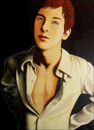 Des attitudes lascives ou contemplatives, des lumières contrastantes, des expressions douces et perplexes, ses acryliques font part d’environnements épurés où les corps et les visages au statisme silencieux sont transposés dans le domaine de l’intemporel.
