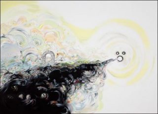 Cette question du débordement, de l’agitation, du basculement d’un monde à l’autre ramène à cette question de l’Apocalypse, «Après moi le déluge» pourrait on dire. Cette notion existe depuis des siècles mais a radicalement changé depuis la seconde guerre mondiale. L’image du champignon atomique a fait prendre conscience à l’humanité que par le biais de la maîtrise technique elle pouvait pour la première fois prendre le contrôle de sa propre fin laissant de côté la part ésotérique de la chose, plus besoin de jugement dernier. Depuis, une masse de discours apocalyptiques foisonnent, et pourtant à l’origine le mot grec «Apokálypsis» suggérait plutôt une révélation par laquelle le réel prendrait une nouvelle signification. Ce glissement de sens passant de révélation à anéantissement se retrouve dans la dualité de certaines œuvres de Vidya Gastaldon. Dans leur éclatement de couleurs et de détails, des entités transparentes, aériennes et dynamiques s’opposent à des monstres à visages multiples tapis quelque part, ses œuvres interagissent les unes avec les autres. Moins idylliques que ses œuvres antérieures sans pour autant être négatives, elles déterminent un univers plastique par le biais de la mise en scène et de la narration.