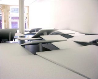 Considérant la réalité comme une donnée instable qui varie selon le regard que l’on porte sur elle, Caroline Molusson se livre depuis près de dix ans à des expériences conjuguant déplacements, multiplication des points de vue, perte de repères et d’équilibre, exploration du vide. Nourrie par sa pratique de la danse et du trapèze, elle multiplie les occurrences formelles (installations architecturales, maquettes, dessins, vidéos) pour renouveler le rapport du spectateur à l’espace, le rendre plus conscient et dynamique. Issus de son environnement immédiat, les matériaux qu’elle utilise sont délibérément fragiles et précaires — papier calque, moquette, carton plume, plexiglas —et bricolés à coups de cutter ou de scotch. À partir de cette radicale économie de moyens et de gestes, elle conçoit des espaces hétérogènes et discontinus où nous nous égarons.