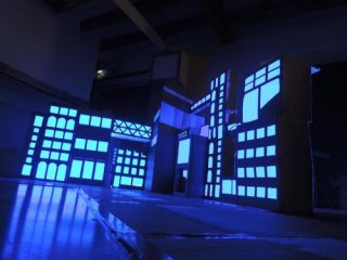 Entre espace de tournage et installation, 4D est une tentative de restitution d’objet cinématographique. L’installation de Julien Ferrato et Gaëtan Trovato se présente sous la forme d’une maquette en carton représentant un paysage urbain dont les personnages prennent possession. Encerclant ce «morceau de ville», se trouvent les rails d’un petit train électrique équipé d’une caméra embarquée permettant de réaliser un travelling. L’outil cinéma s’en retrouve infantilisé et il paraît accessible. Tout comme l’utilisation du carton dans la construction des immeubles, ces cartons qui à l’origine constituent les boîtes où nous entassons nos vieux souvenirs, dans un grenier ou une cave…