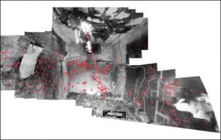 L’enjeu est donc pour les experts de construire un dispositif d’images, un artifice à même de révéler la substance de l’image, sa vérité. Le dispositif a pour objectif de montrer ce qu’a priori, on ne peut pas voir. Il rend visible l’invisible. Ainsi, Alphonse Bertillon construit l’espace métrique de la scène de crime ou Richard Helmer superpose l’image du crâne et les visages de Josef Mengele. Rodolphe A. Reiss révèle des signes imperceptibles à l’œil nu, comme des traces de sang sur un linge lavé. Parfois, c’est la matière même de l’image qui est sondée: les silhouettes des victimes de l’attaque d’un drone à Miranshah sont-elles réellement incrustées dans les pixels de l’image?