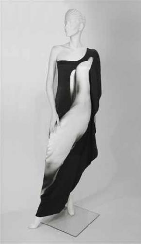 Les images en deux dimensions deviennent tridimensionnelles, dans une série de six robes aux lignes souples et fluides intitulées Air, Water (l’eau), Moss (la mousse), Fire (le feu), Upside Down Body (le corps à l’envers) et Black Swirl (le tourbillon noir). S’inspirant de la force des énergies naturelles et humaines, les motifs photographiques sont imprimés numériquement sur des matières uniques, créées spécifiquement pour cette collaboration.