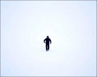 La projection de trente de ces diapositives restitue l’aveuglement et la perte de repères provoqués par le phénomène atmosphérique de la disparition de la ligne d’horizon. «La brume voile rarement tout, le plus souvent il reste encore un fond visible. Mais ici, il n’y avait plus d’horizon, ni de relief, nous avions la sensation de glisser à travers un nuage». La projection restitue cette disparition de la ligne d’horizon, le regard est pris, happé par le blanc, l’espace sans reliefs ni structures déstabilise.