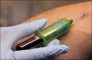 Et l’histoire que Molodkin nous raconte à travers son installation-sculpture suscite de nombreuses associations. On est d’abord confrontés à la reconstitution d’un cabinet de prélèvement sanguin. Très médical, froid et technique. C’est là que, notamment lors du vernissage de l’exposition, le sang de demandeurs d’asile en France a été prélevé pour être ensuite injecté dans l’œuvre.