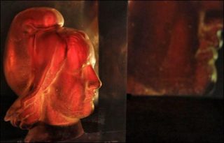 Travaillant de manière récurrente sur des espaces en négatif qu’il remplit de liquide, Molodkin crée des sculptures fluides. Cette dynamique dramatise le propos et transforme cette réplique fantomatique de la Marianne en lieu où se déroule un drame ensanglanté.