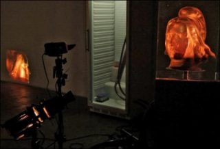 Visuellement, l’installation dégage une grande zone d’inconfort: l’artiste cultive le côté clinique avec tout l’attirail mécanique et électronique en vue, relié par un ensemble de câbles. A cela s’ajoute un dispositif de capture vidéo en direct qui projette deux images en gros plan de la tête de la Marianne sur les murs adjacents. L’une en petit format à l’entrée de la salle et l’autre dans une taille imposante occupant le mur du fond.