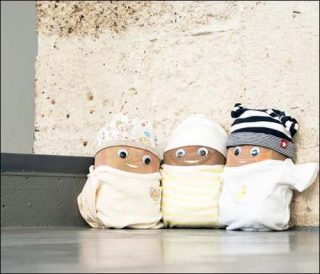 De manière similaire, le travail de Morag Keil (née en 1985 en Ecosse) se réfère au corps et sa relation aux structures sociales établies. Ses Flour Babies sont de petites sculptures faites de sacs de farine et de vêtements de bébés qui font certainement appel à un roman éponyme de 1992. L’auteure américaine Anne Fine y décrit une expérience en milieu scolaire où l’on donne à de jeunes adultes en difficulté des «flour babies» dont ils doivent s’occuper pendant une période définie. Elle décrit comment, en partageant leurs vies, en prenant soin de ces petites créatures bizarres, les jeunes gens en viennent à réfléchir à leur propre environnement social et réussissent à surmonter leur anxiété. Morag Keil observe la manière dont l’identité se construit et est interprétée, en relation à une situation sociale donnée dans le capitalisme avancé. Avec ses Flour Babies, de manière humoristique, elle soulève de nouveaux modes de perception.