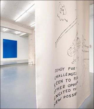 Une note inscrite sur la peinture de Helen Johnson, Marginalia (2015) nous dit: «Kant pense qu’il peut séparer l’ornementation de l’art. Derrida dit non (ou vraiment, vous pouvez?)», et, au dos du tableau, Helen Johnson s’exprime directement: «prête pour de nouveaux défis — désireuse de trouver de nouveaux débouchés — excitée à l’idée d’explorer de nouvelles possibilités.» L’œuvre à double face est encore plus stratifiée et dense que ses peintures précédentes. Helen Johnson (née en 1979 en Australie) peuple ses peintures à l’aide d’un registre comique subtil, utilisant des éléments de cartoons tout en écrivant des mots sur la toile comme au dos. Ceci révèle un réseau de sources tournoyant, ingénieux et spirituel. Marginalia s’accompagne également de références spécifiquement australiennes, auxquelles Helen Johnson confronte un public venu d’ailleurs. Certaines de ces références seront invisibles aux yeux des spectateurs, d’autres établiront une connexion, et ouvriront une nouvelle conversation. En relation avec sa recherche actuelle sur toutes les possibilités offertes par la peinture, Helen Johnson a récemment publié un livre intitulé Painting is a Critical Form.