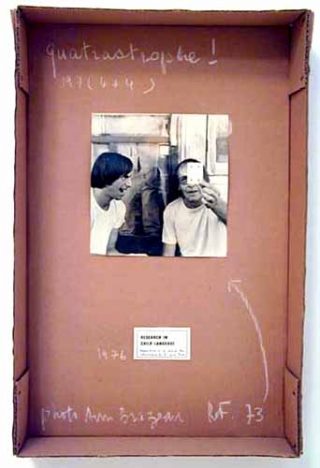 — Quatastrophe! (Research in Child Language), 1976. Boîte en carton avec pastel, papier collé et photo. 56 x 36,5 x 10 cm.