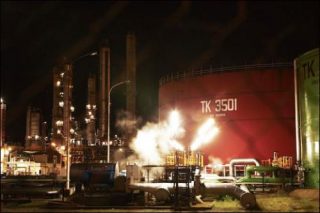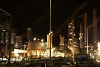 Parfois au loin, on discerne une cheminée qui fume, une camionnette, une ombre qui se détache. Les présences humaines ne sont jamais loin mais elles sont comme estompées dans ces panoramas. L’homme s’efface face à la puissance des constructions. Frontales, dépeuplées, offertes, ces photographies sont comme des fenêtres ouvertes sur notre inconscient nocturne.