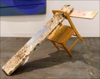 Elle propose notamment de poursuivre ses dernières recherches en intégrant plus directement des éléments figuratifs dans ses compositions, comme des pièces détachées de carrosserie de voiture, des morceaux de meubles, de bureaux, d’étagères et des résidus en tout genre trouvés sur site. Une formule qui rend son travail plus complexe que les utilisations unitaires de matériaux.