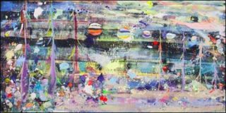 On est gagné par l’étonnement, voire le trouble devant l’aspect naïf que donne parfois la simplification extrême des repères figuratifs: des arbres seulement situés par quelques coups de brosses rapides, des bâtiments architecturaux localisés par de sobres aplats de couleur selon une géométrie approximative et des étendues d’eau en rubans qui serpentent ou s’étirent d’un bord à l’autre de la toile.