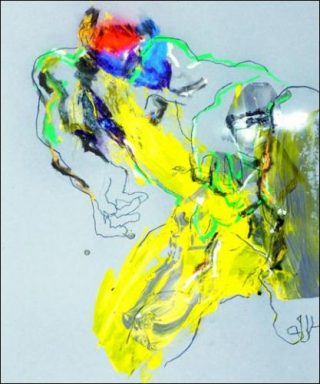 La mixité des matériaux qu’il utilise: peinture, fusain et pastel traduit la frénésie de son Å“uvre. Arnaud Franc laisse son instinct guider l’impulsion de son trait déformant toujours plus les corps se dirigeant vers une distorsion libératrice. C’est de la tension que le geste jaillit et se prolonge en un trait incisif et nerveux.