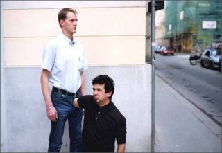 Dans « Looking for a Bomb », divers personnages s’adonnent à des fouilles au corps plus qu’improbables. On y voit un homme enfonçant entièrement son bras dans le pantalon d’un autre, en pleine rue. Dans une autre scène, le personnage engouffre sa tête dans une braguette. L’attitude figée des personnages, les postures qu’ils adoptent, ne renvoient guère aux méthodes policières habituelles. Le spectateur a l’impression de surgir au milieu d’une scène à caractère intime, plus que d’assister à l’interpellation d’un kamikaze potentiel.