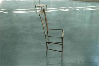 Ainsi les sculptures de Julie Chaumette partent d’objets existants, en l’occurrence des chaises, qu’elle meule jusqu’à ce qu’il n’en reste plus que l’essentiel. La forme qui en résulte est d’une extrême finesse, qui devient un simple signe dans l’espace tel un dessin en volume.