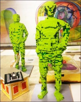 Noyau central de l’exposition, l’aire de jeu donne accès à une cinquantaine de POFS adaptés aux enfants, variations et déclinaisons des célèbres «prototypes d’objets en fonctionnement» que Fabrice Hyber imagine depuis 1991 dans des versions spécifiquement produites pour l’exposition. Hommes de Bessines réalisés en légos, minis Ted Hyber, mini escaliers sans fin, ballons carrés couleur bleu et rose, doubles masques…
