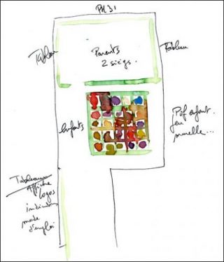 Pendant de l’univers concret, matériel, des enfants, ce monde en deux dimensions fonctionne comme un écran, sur le mode du virtuel et dans un rapport à l’imaginaire du spectateur qui peut déplier les images accumulées sur l’Å“uvre: croquis d’estomac, esquisses du «Prototype de Paradis» montré à la Biennale de Lyon, images de primates… s’y associent librement.