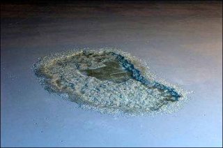 — Flaque, 2006. Miroir au sol, cristaux de verre, eau.
