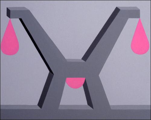 Les toiles et les sculptures d’Yves-Eric 2boy donnent à voir un monde à la fois disharmonique et équilibré, où se côtoient grandes architectures statiques et petits blocs de chair