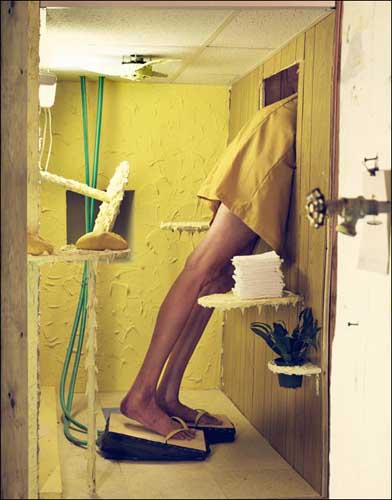 On connaît Mika Rottenberg pour ses vidéos mises en scène dans des installations élaborées. L’exposition «Performance Stills & Drawings», composée d’une série de photos et de dessins,