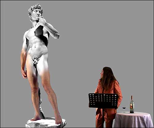 Robert Morris propose au Louvre non pas une des œuvres minimalistes, mais un discours critique sur la réception d’une célèbre sculpture de la Renaissance, le David de Michel-Ange. Il