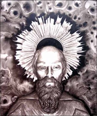 — Saint Statue, Antigua Guatemala, 2005. Encre de Chine sur papier calque. 78,5 x 69 cm.