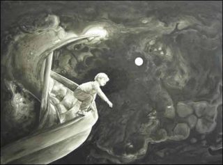 L’imaginaire est convoqué à travers des rêves qui se transforment en cauchemars. La même tâche d’encre se révèle à la fois féerique et démoniaque. A partir de la même matrice deux considérations différentes de la vie s’affrontent. Le vaporeux de la technique évoque autant la peinture traditionnelle chinoise que les taches utilisées dans les séances psychanalytiques.