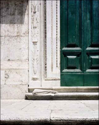 Véronique Ellena a initié ce travail à Rome, en 2009, suite à son séjour à la Villa Médicis. Elle photographie les sans-abris à l’aube, allongés sur les parvis, sous le porche des églises, au pied de monuments: formes imprécises, voire mystérieuses, qui semblent appartenir au corps de la ville, à sa minéralité. Ces présences reposent dans le calme et la douceur, mais aussi dans la solitude de ce moment entre nuit et jour.