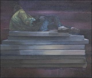 Iris Levasseur. «Amnésie», cela vient du fait que j’ai fait poser la modèle dans un lieu qui a été un des derniers départs pour les camps de concentration. C’était à 50 mètres de mon atelier. Il se trouve qu’à cet endroit s’est installé un camp de Roms. Cela a duré un an. Puis le camp a été rasé du jour au lendemain. C’est à ce moment-là que des ouvriers ont installé des grosses stèles en béton pour meubler le vide. J’ai dessiné et j’ai peint ces éléments architecturaux.