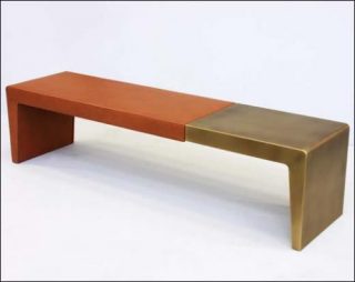 La première collection d’Isabelle Stanislas pour le ferronnier d’art Pouenat se compose de pièces de mobilier et d’un luminaire: le banc For an instant, la table basse Partition, le guéridon Part of partition, le fauteuil Line-stream 1, le canapé Line-stream 2 et l’applique Candlelight. En version indoor ou outdoor, le mobilier pensé par l’architecte allie fonctionnalité et esthétisme. Structure en laiton patiné avec finitions en bronze et coussins en velours de soie pour cette version indoor.
