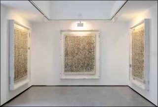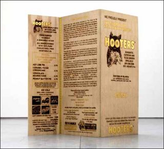 — Hooters, 2006. Pyrography and gold leaf on plywood. 304,8 x 243,8 x 9,5 cm.