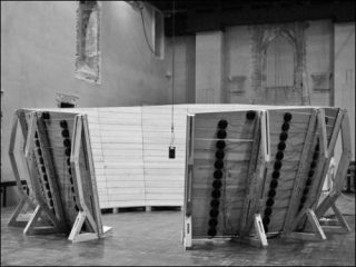 Devant nos yeux et à notre contact, le tore devient simultanément sculpture, lieu et mobilier. Sans se fixer sur aucune de ces modalités, il compose un temps suspendu avec la circulation d’une vibration qui traverse inlassablement l’église et le corps des visiteurs. Sa présence tour à tour imposante et sous-jacente nous laisse le temps et l’espace de coexister, avec ce que sa consistance renvoie à chacun.