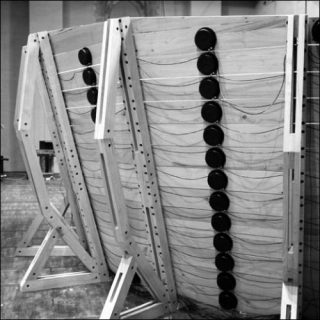 Dans une posture oblique qui associe la verticalité de la station debout à la détente de la position allongée, le corps se relâche, s’ouvre à une qualité de perception nouvelle, propice à l’état méditatif et à la projection d’images mentales. La sculpture sert de résonateur à la trame sonore grâce à des haut-parleurs vibrants laissés visibles et fixés sur la surface extérieure. La sensation tactile complète l’écoute, l’auditeur sent la vibration le parcourir entièrement et développe une réception plus introspective.
