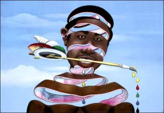 Chéri Samba peint comme on chronique. La palabre africaine correspond à l’agora grecque. Plus qu’une parole c’est une façon de vivre et de travailler. En France, impossible de signer un contrat sans passer par le dîner d’affaire; en Afrique, impossible de conclure une affaire sans avoir au préalable parlé de tout et de rien. La palabre appartient à cette culture orale qui fait dire que lorsqu’un vieillard s’éteint en Afrique, c’est comme si une bibliothèque brûlait en Europe. Chéri appartient à cette culture de l’oralité, sa peinture montre autant qu’elle dit. Ses toiles sont des unes de journaux, il prend la parole pour donner son avis. Il prend ses pinceaux pour rédiger ses pensées. A Londres, dans certains parcs, il est possible de prendre la parole et d’haranguer la foule. Juché sur une caisse en bois, chaque citoyen peut discourir, soliloquer à sa grâce.