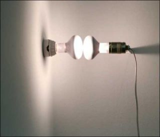 Dans un coin de la salle, discrète, une lampe en éclaire une autre, tandis que deux câbles électriques courent sur les murs en encerclant l’exposition d’une charge invisible mais légèrement bourdonnante. Il va même jusqu’à imposer le silence à des flûtes à bec, bouchées par du poison, non seulement muettes mais périlleuses car pouvant ôter la vie de celui qui se risque à y souffler… Ce qui confère une étrange morbidité à la musique (et à l’art).