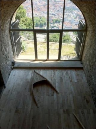 Les Å“uvres, que l’artiste a convoquées dans cette exposition, participent toutes de ce principe : une bibliothèque qui se ferme au monde, des chaises qui ne se portent plus, une barque qui s’enlise dans sa matérialité… À chaque fois, Stéphane Thidet nous défait de nos certitudes.