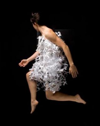 Pour signifier la marchandisation du corps féminin, l’une des danseuses est déposée nue, comme un vulgaire paquet, par un assistant dont le nom ne figure pas au générique du spectacle, sur la table − et se retrouve, par reflet spéculaire, exactement dans la même position que sa partenaire au sol. De même, l’effeuillage de la danseuse, ralenti à l’extrême, est parfaitement exécuté. Il produit vraiment son effet et illustre stricto sensu le titre de la pièce.