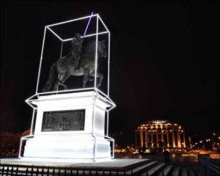 Jean-Charles de Castelbajac. Sur le pont Neuf, j’ai encadré de néons la sculpture équestre d’Henri IV. Cette intervention prolonge mes travaux antérieurs comme ceux de la pyramide du Louvre ou du Drugstore des Champs-Elysées. Je voulais intervenir pour l’anniversaire de l’assassinat du roi de Navarre. J’ai proposé mon idée au Ministère de la culture et elle a été retenue. C’est assez étrange quand on y pense. C’est la première fois que la République commémore le décès d’un roi de France! C’est assez surréaliste. Tout autant que la rencontre improbable entre les deux familles descendantes de Louis XIV. Le soir du vernissage, les Bourbon et les Orléans se sont salués pour la première fois.