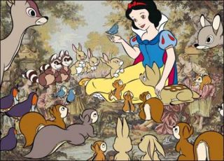 Jean-Charles de Castelbajac. Si Marie-Antoinette, la plus belle femme du monde, se retrouve affublée de botox, je voulais également évoquer le syndrome de Blanche neige. Ce mythe parle de la pérennité de la beauté, il évoque son immortalité. Nous avons reproduit, avec un tapissier des Flandres, des scènes – surtout du XVIIe – avec des inclusions de personnages de Walt Disney. J’exploite les mêmes procédés que ceux qui me servent à concevoir une robe Bambi. Les sérigraphies de tapisseries Louis XIII accueillent, elles aussi, le même personnage. Les deux systèmes fabriquent des sentiments.