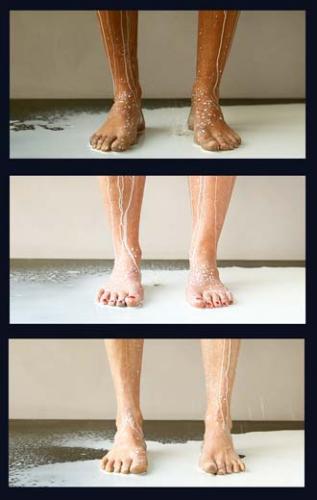 On relève tout particulièrement un intérêt prononcé de l’artiste pour le classicisme comme dans ces branches d’acacia, aux épines saillantes dont la pureté et la violence conjuguées résonnent avec certaines figures de la peinture ancienne. Dans la vidéo, composée de quatre écrans superposés, on voit du lait couler sur des jambes nues et lisses évoquant la statuaire. A travers cet ensemble hétéroclite, Jean-Claude Ruggirello construit un monde et son origine.