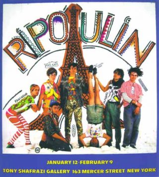 J’y suis allé sur la pointe des pieds au début. C’est d’abord une rencontre avec Tom Tom. J’ai été très intéressé par son travail sur les panneaux publicitaires d’Oberkampf. Je le voyais passer des heures à faire ses trucs sur les panneaux, c’était très minutieux, très impressionnant. Il découpait, il collait, c’était très intéressant. Lui était unique, sa manière d’intervenir aussi. Je n’avais jamais vu ça ailleurs. Le contact s’est fait tout doucement. J’étais surpris qu’il connaisse mon travail. Je pensais que ce que j’avais fait avait été enterré. Je me suis aperçu qu’il était très au fait de ce qui avait été fait dans les années 1980. Visiblement il avait vu ce que j’avais fait, je ne sais pas si cela l’avait marqué, mais à travers le livre de Denys Riout, il connaissait les Ripoulin et mon travail. Tout s’est fait à travers lui, il m’a fait rencontrer toute cette génération d’artistes graffitis, d’artistes urbains. Ensuite ça a été comme un engrenage, je ne voyais plus l’intérêt de retourner dans la rue, je ne voyais plus ce que j’avais à y faire, une page avait été tournée comme je te disais, les yeux collés dans la rue, c’était vraiment pour faire plaisir aux autres. Par contre voir ce que les autres faisaient, découvrir un peu toute cette génération, ça me plaisait. Il y avait beaucoup de gens de qualité. Cela me rappelait les années 1980 et les Ripoulin. Sur les huit membres du groupe, il y avait des gens de qualité. Aujourd’hui on parle de Pierre Huyghe et de Closky, mais les autres étaient bons aussi. Huyghe est désormais au pinacle de l’art contemporain, mais à l’époque le monde de l’art nous crachait dessus.
