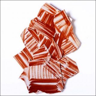 Le papier recouvert de motifs peints est ensuite découpé puis mis en relief par différents procédés: le pliage, la superposition… Jean Laube recourt ainsi à la fois aux techniques picturales et à un travail sur le volume, et transforme littéralement la peinture en sculpture.
