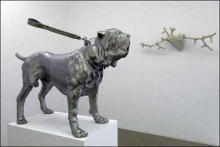 — Doberman, 2003. Bronze nickelé. 105 x 90 x 38 cm.