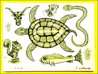 — Turttle : Longhorn, Chicken, Snake, Squirrel, Fish and Bugs, 2002. Graphite sur papier. 56 x 76 cm.