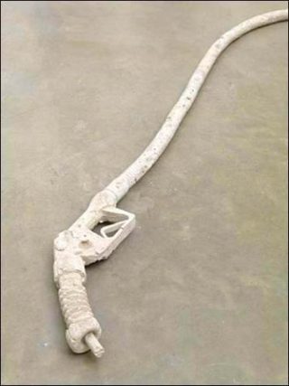 Enfin, deux pièces annexes sont consacrées l’une à une pompe à essence en quelque sorte fossilisée, l’autre à une vidéo évoquant l’après-Katrina à la Nouvelle-Orléans. Petrified Petrol Pump oppose, toujours dans le même esprit, l’organicité d’un calcaire impur à la froide rectitude de la machine: mais cette fois, la nature tient sa revanche et traite le mal par le mal, le fossile par le fossile, le pétrole par le temps.