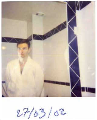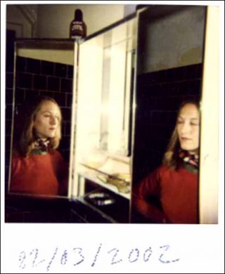 En fait, pour abolir toute trace d’original, les dessins initiaux sont supprimés. Le dessin et la photo se confondent ici, sans privilégier un médium à un autre. En photographiant le reflet de la forme plutôt que l’original, l’artiste met la forme en abyme. Au mur sont présentés des polaroïds montrant des amis vus de dos, leur visage apparaissant dans le miroir de leur salle de bain. Dans un décor habituellement réservé à la toilette et à la nudité, les hommes et femmes se mettent en scène.